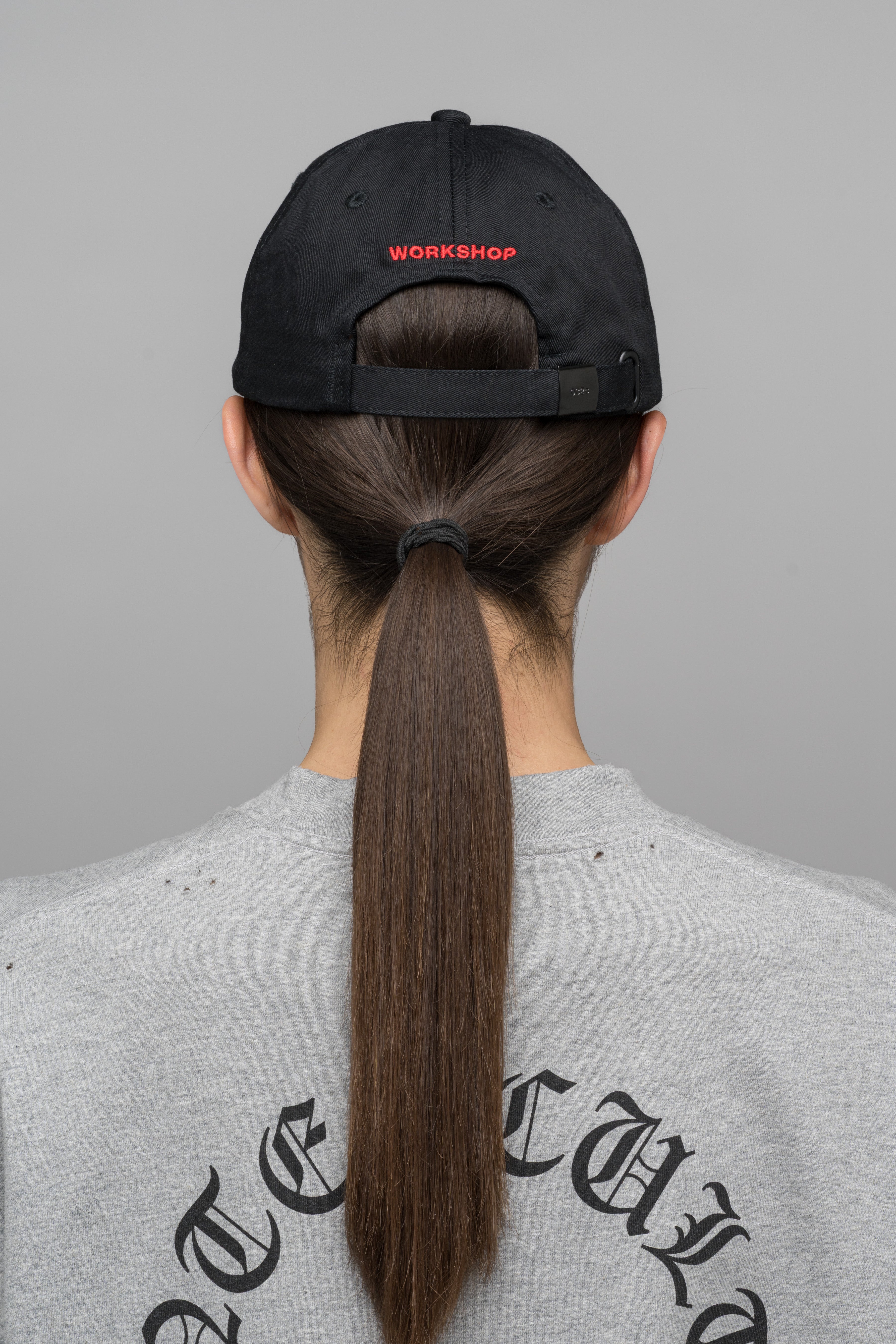 The 032c Classics Collection Cap comes in black and features the 032c logo embroidered above the visor.