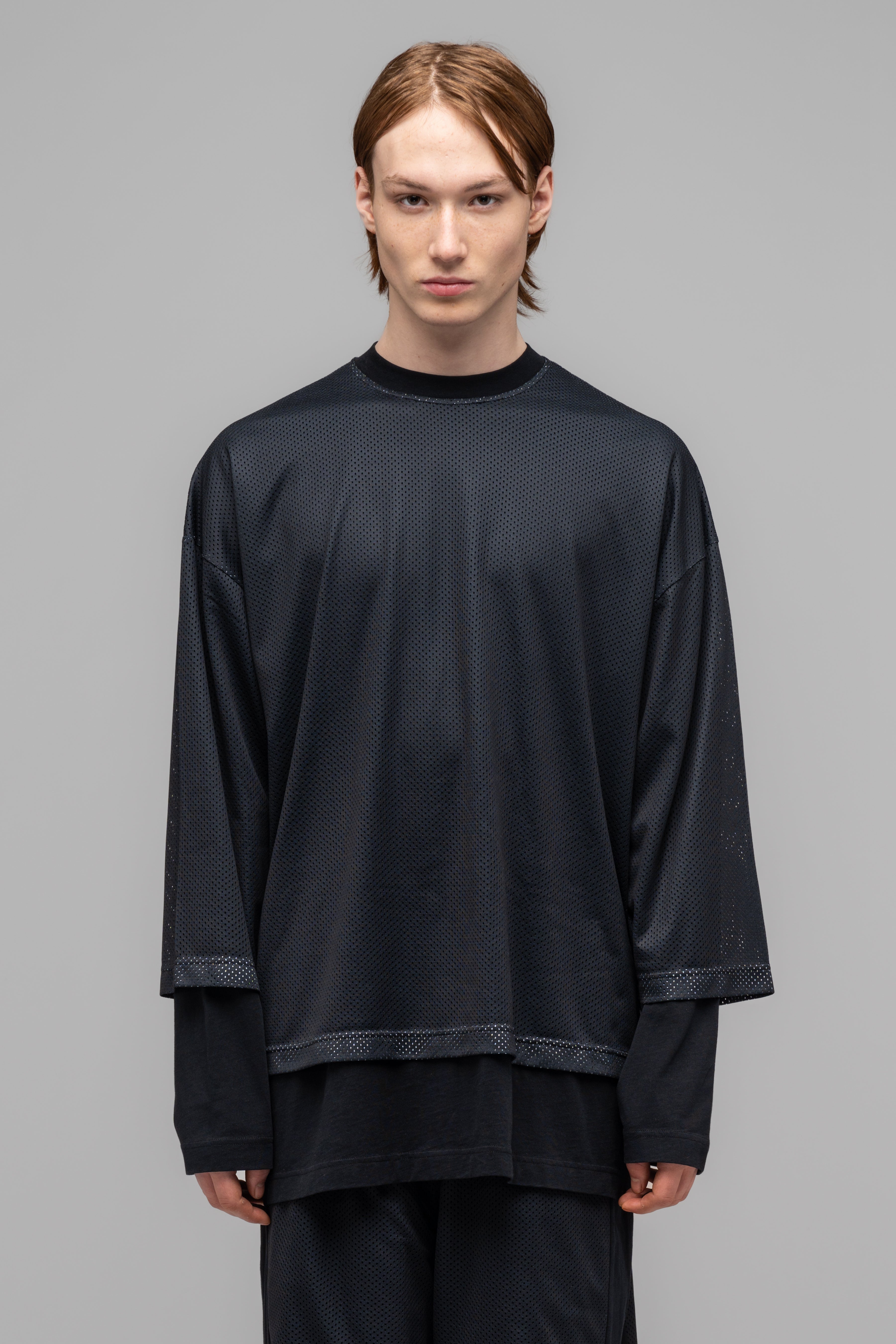 This layered mesh longsleeve in washed black has a sporty yet modern look.