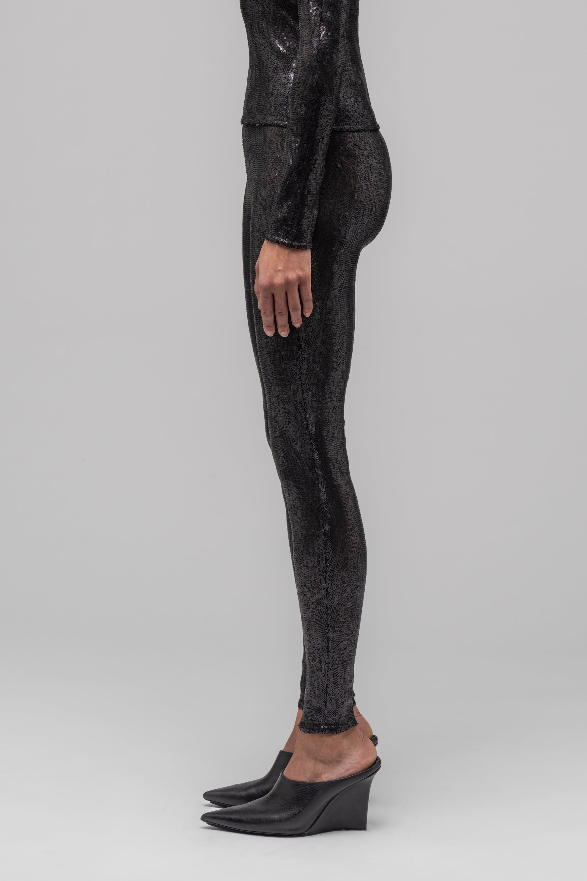 Super tight and stretchy sequined trousers. Elasticated waistband and concealed zipper that allows you to slide in smoothly. Concealed zippers at leg openings.