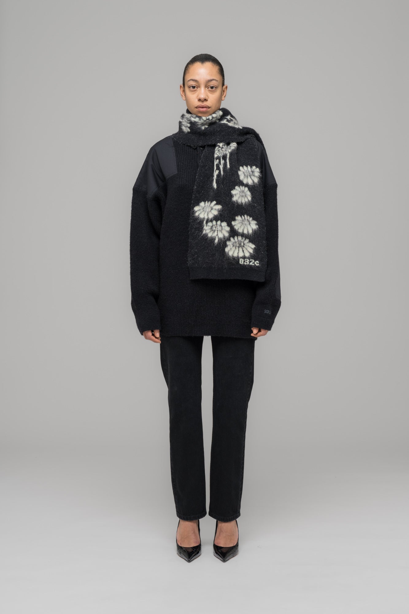 Scarf in a soft alpaca-blend with brushed finishing and all-over “Melting Daisies” jacquard artwork.