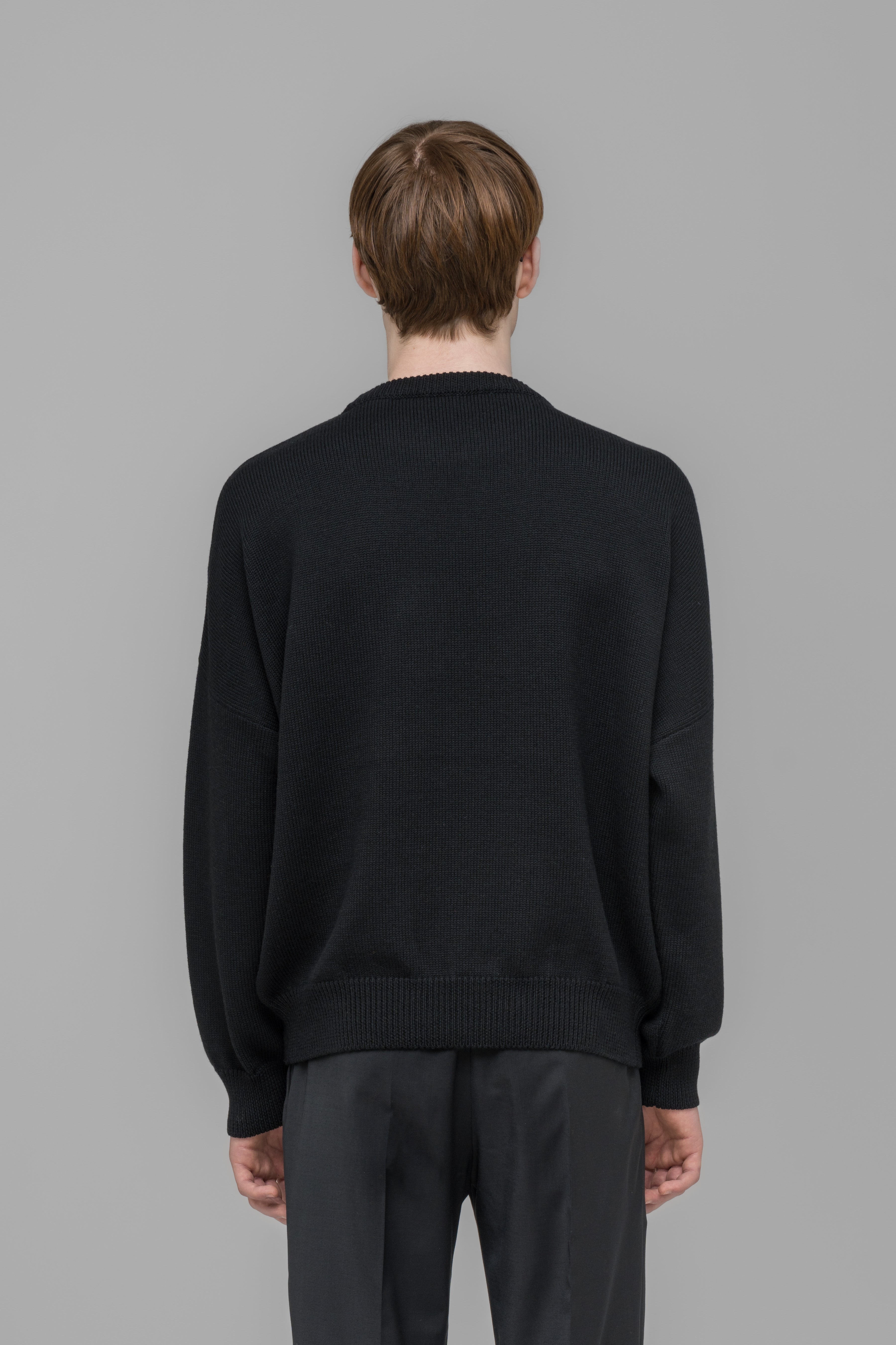Our carry over selfie jumper made from our soft merino wool yarn. Iconic mirrored 032c Berlin inserted jacquard artwork on the front. Ribbed cuff, neckline and hem.