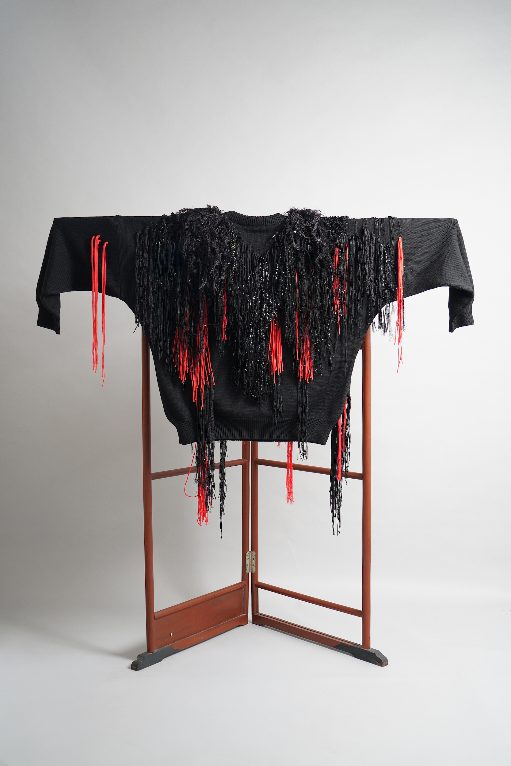 - Design Features: Layered fringe composition and mixed yarn palette reflective of the duo’s sculptural textile language