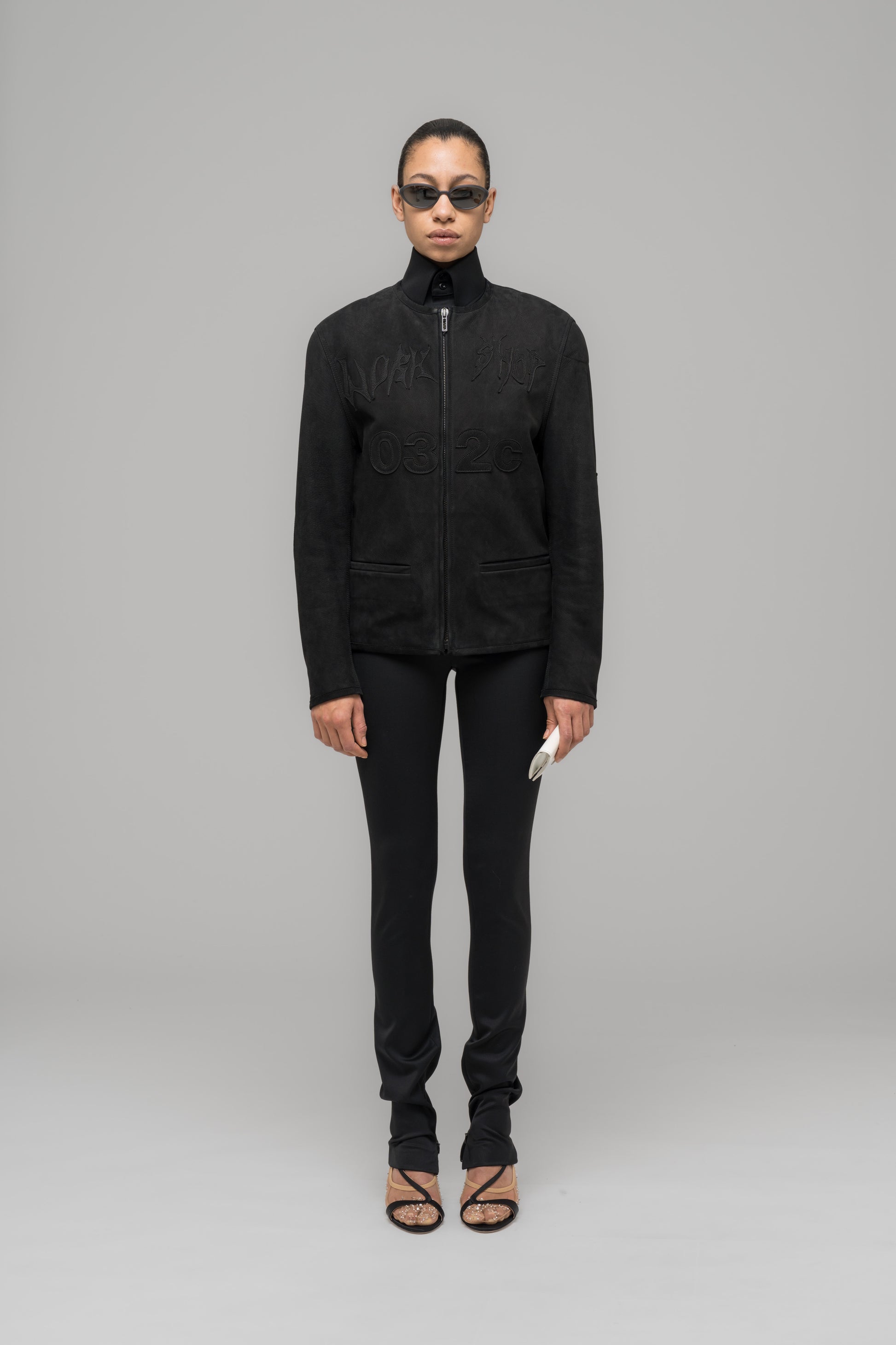 032c's twist on a traditional style - the leather janker, crafted in our seasonal waxy leather treatment, has a clean-cut design with bound edges, clean welt pockets on the front, and mesh lining.