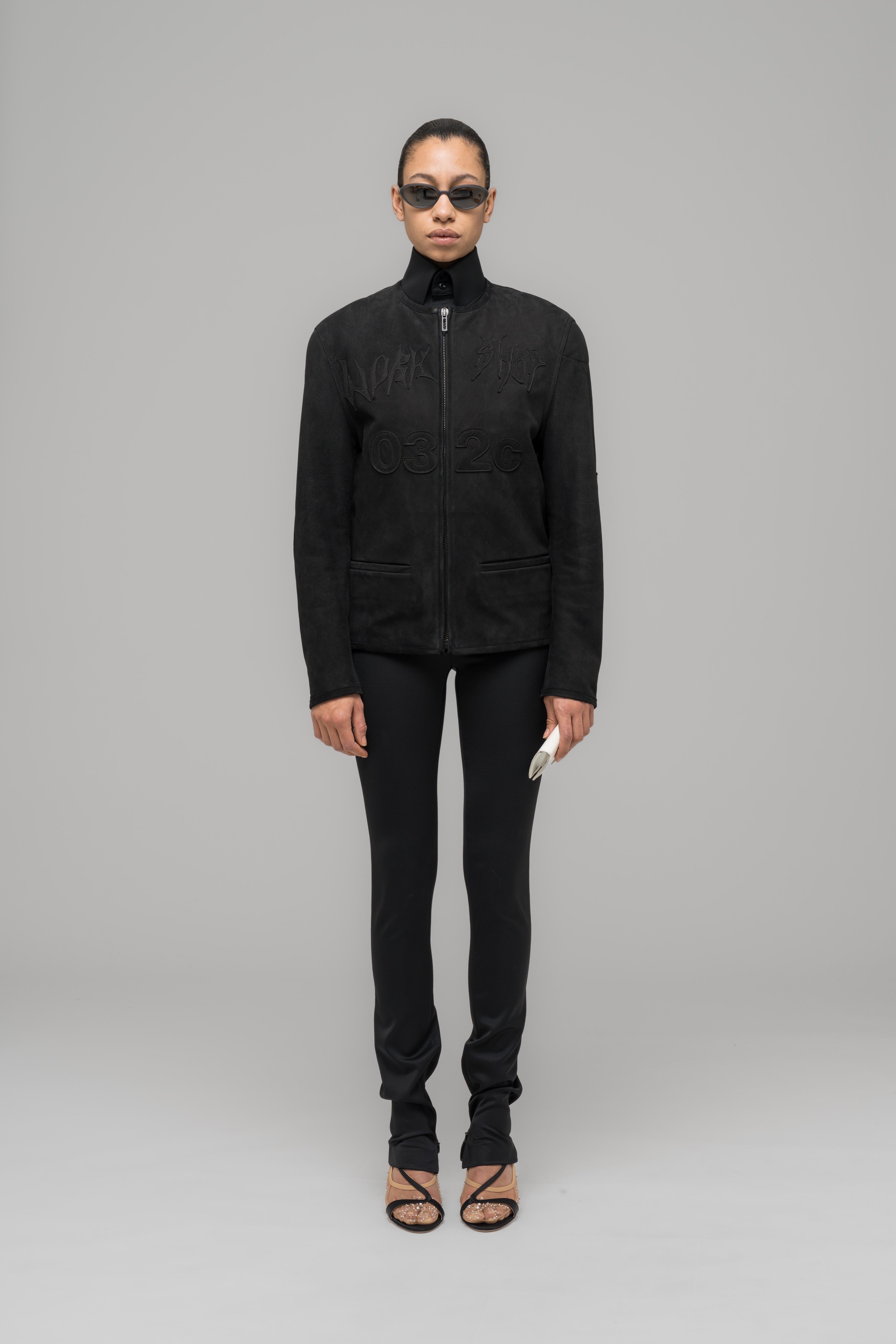 Leather janker in seasonal waxy leather with a clean-cut design, bound edges, welt pockets, and breathable mesh lining.