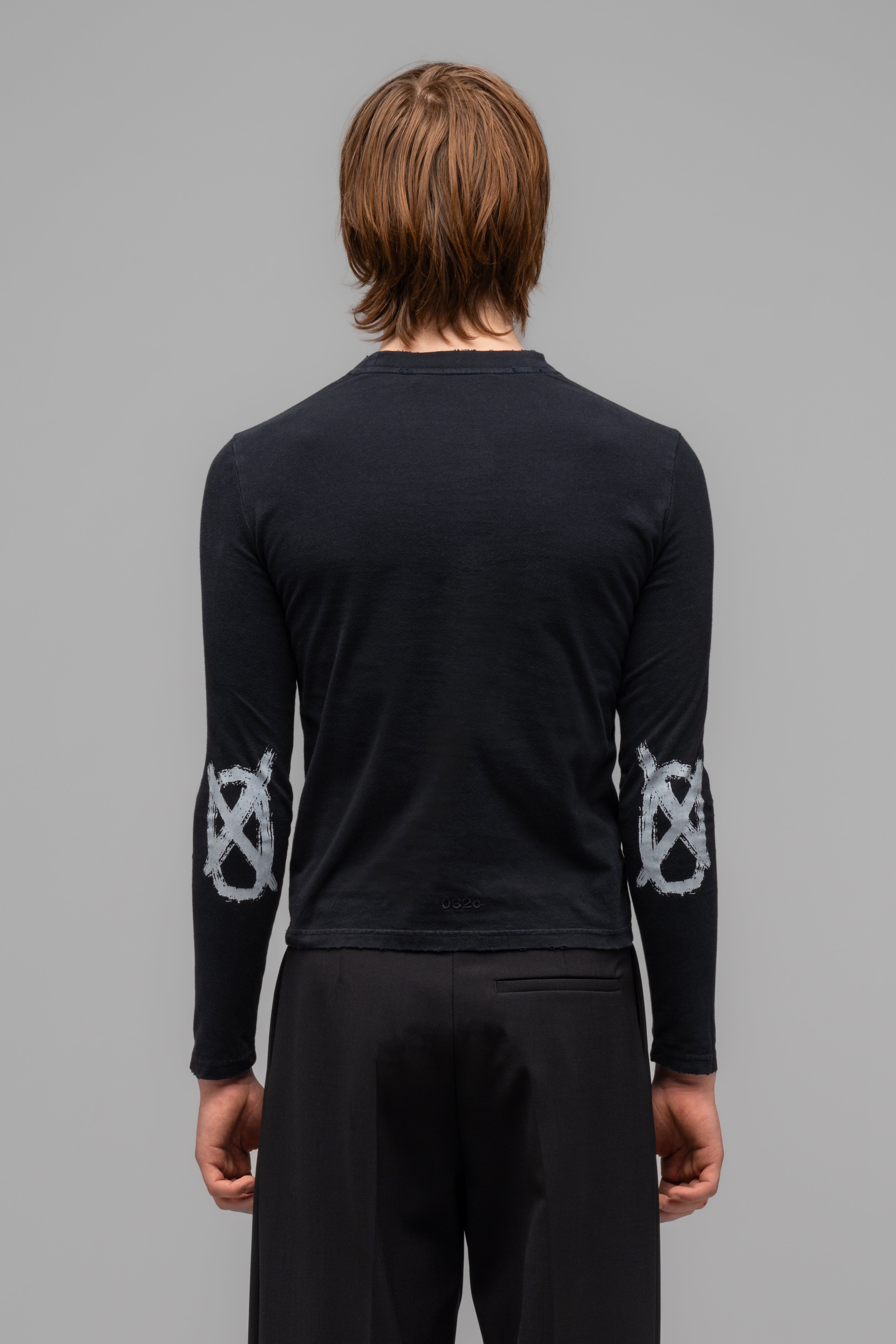 This distressed tight-cut longsleeve comes in a faded black for an overall vintage feel.