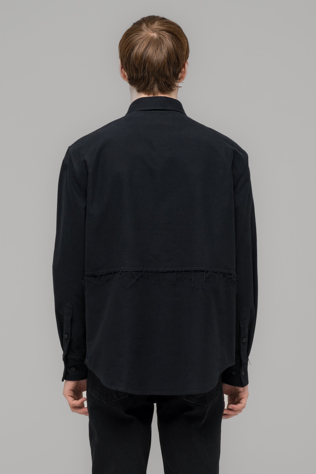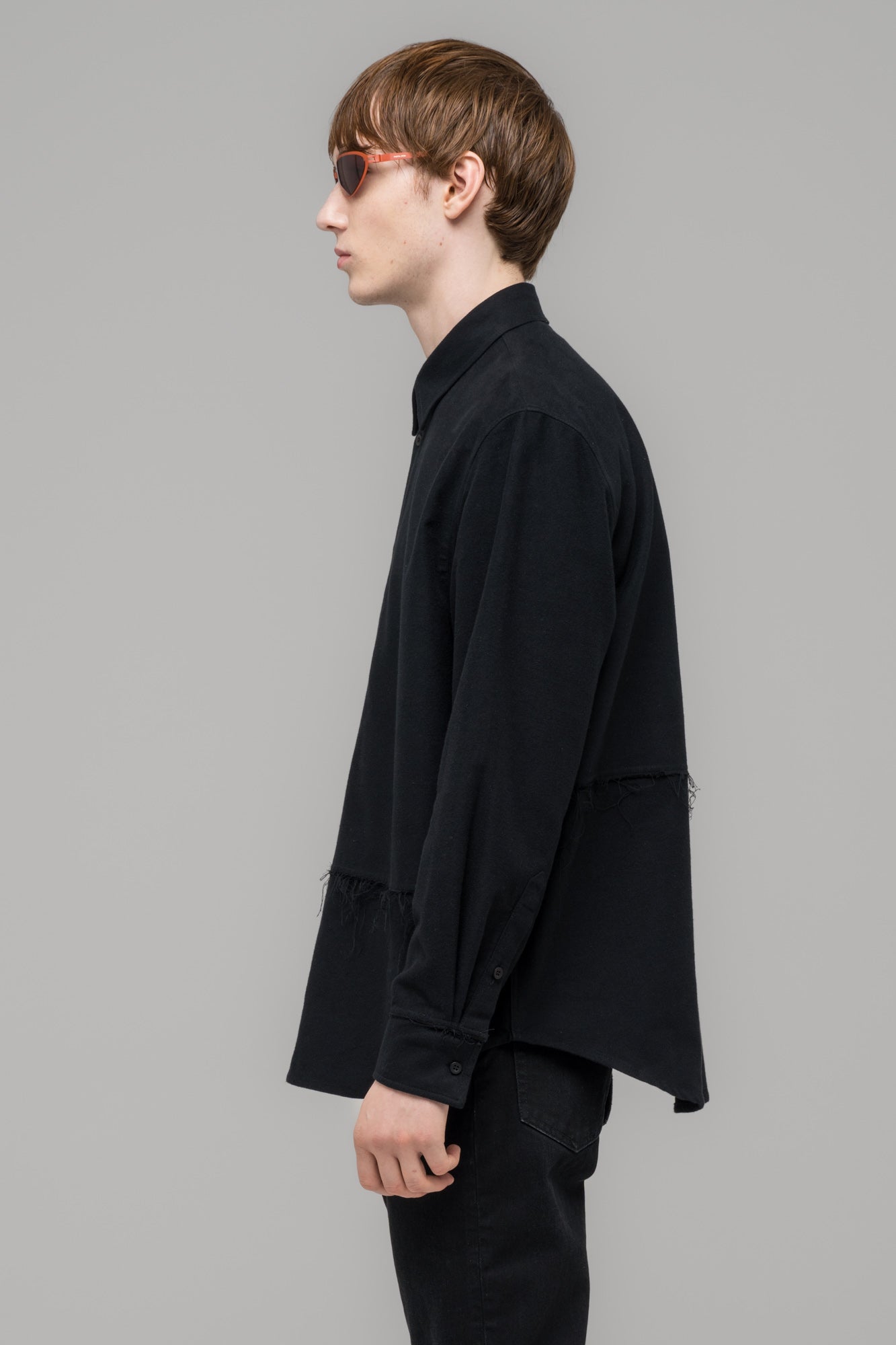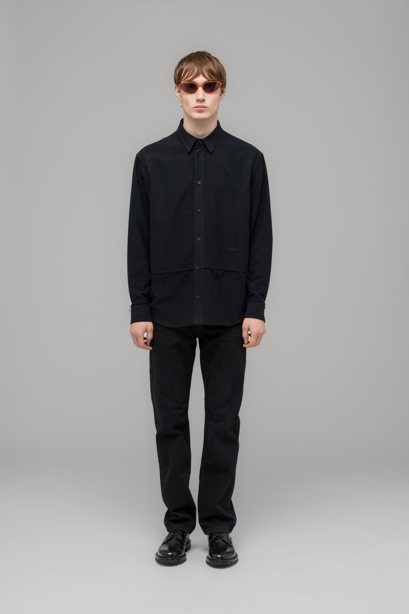 Flannel shirt with front button closure, patch details, and embroidered 032c logo.